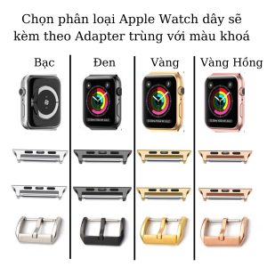 Các màu cơ bản của apple watch : Đen, Bạc, Vàng ,Vàng Hồng. Shop sẽ gửi kèm thêm khoá trùng với màu adapter .