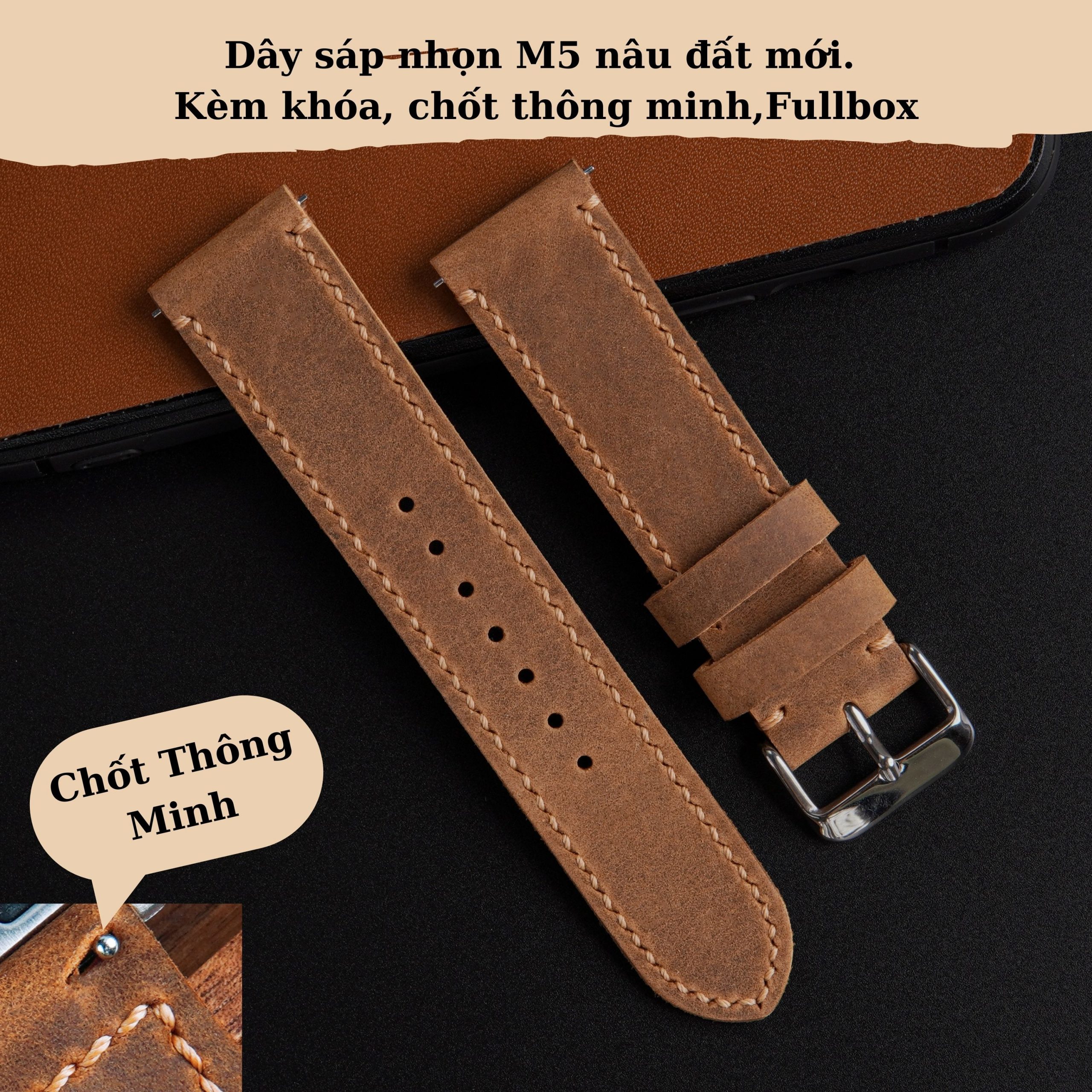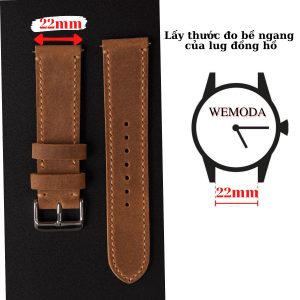Dây đồng hồ da bò sáp WEMODA dây da đồng hồ 18mm 19mm 20mm 21mm 22mm 24mm handmade dây đeo đồng hồ gia xịn cao cấp đẹp giá rẻ M5. Dây da đồng hồ bò sáp M5 được sản xuất từ xưởng handmade tại Việt Nam. Dây đeo đồng hồ da bò sáp wemoda cam kết 100% da thật, handmade, khâu tay thủ công từng đường kim mũi chỉ. Dây đồng hồ wemoda cam kết không bong tróc da, da mềm, ôm tay, size chuẩn cho các dòng đồng hồ 18mm 20mm 22mm, không gây ngứa, dị ứng.