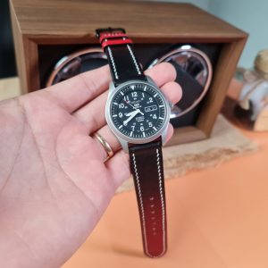 Chất liệu: Dây đồng hồ da Veg được lên màu bởi nhà cung cấp Fiebing’s của Mỹ. Vì vậy, các sản phẩm của Vnstrap có độ mềm, dẻo và dai, mùi hương thoảng nhẹ, không hắc như các loại da PU. Dây da đồng hồ cao cấp da sáp ngựa điên giúp giữ form dây lâu hơn, không bị trão, chảy như các loại dây da giá rẻ thông thường khác.