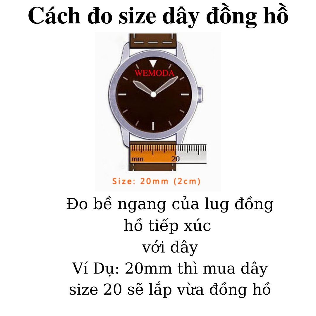 Dây đeo đồng hồ gia xịn cao cấp. Dây đồng hồ wemoda cam kết không bong tróc da, da mềm, ôm tay, size chuẩn cho các dòng đồng hồ 18mm 20mm 22mm,24mm không gây ngứa, dị ứng.