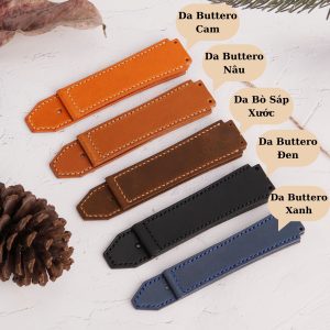 Sản phẩm được làm thủ công với chất liệu da thật. 1. Da sáp ngựa điên với đặc tính dễ để lại vết xước khi cào lên da. Đây là loại da khá phổ biến và được sử dụng nhiều tại Việt Nam . Da sáp 1 lớp mang lại cảm giác sử dụng rất handmade 2. Da thảo mộc Butterro cao cấp . Đây là loại da có giá thành đắt gấp 10 lần da bò thông thường . Rất an toàn cho da người sử dụng. Chất da đanh vân mịn . Cảm giá sử dụng tuyệt vời . Dây da được tặng kèm tool thay dây chuyên dụng cho đồng hồ Hublot . –